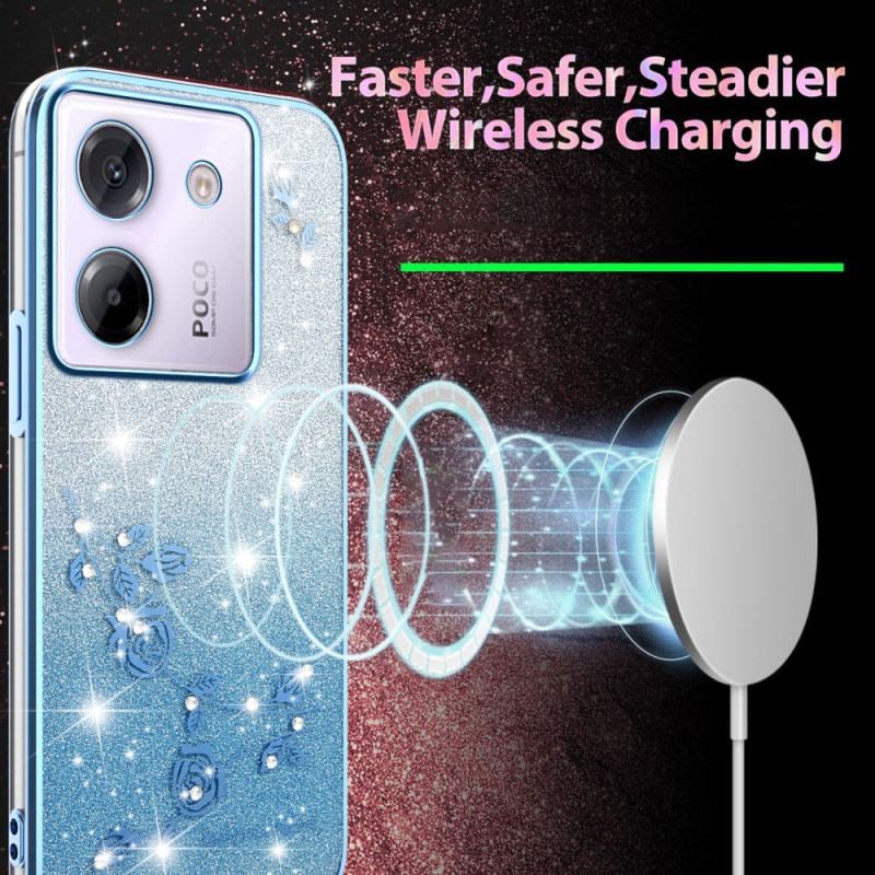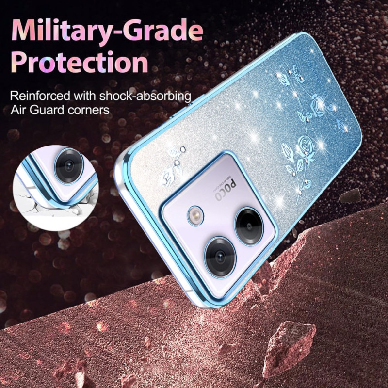 Protégez votre Xiaomi Poco M7 Pro 5G avec élégance grâce à cette coque en TPU flexible ornée de fleurs éternelles et de strass scintillants. Son design dégradé à paillettes apporte une touche glamour et tendance à votre téléphone.