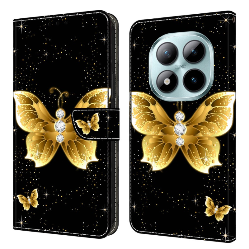 Proteggete il tuo smartphone con stile grazie a questa cover con patta ornata da farfalle dorate. Dotata di un pratico supporto pieghevole, di slot per carte e di una sicura chiusura magnetica, unisce stile e funzionalità per l'uso quotidiano.