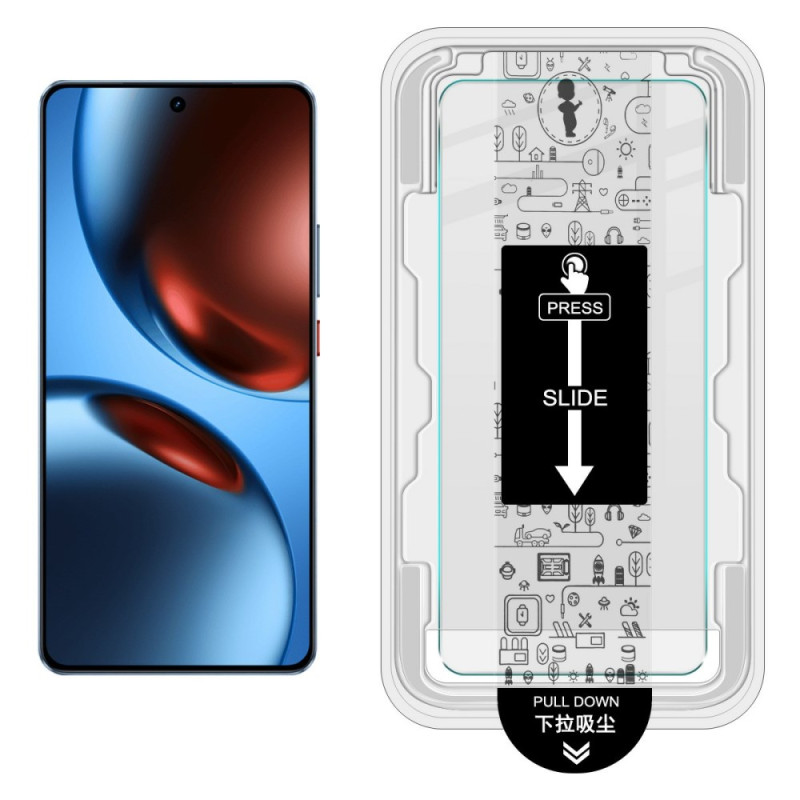 Protezione dello schermo ultraresistente con installazione automatica senza bolle. Vetro temperato 9H per un'eccezionale chiarezza HD, rivestimento oleofobico antigraffio e compatibilità con lo sblocco delle impronte digitali.