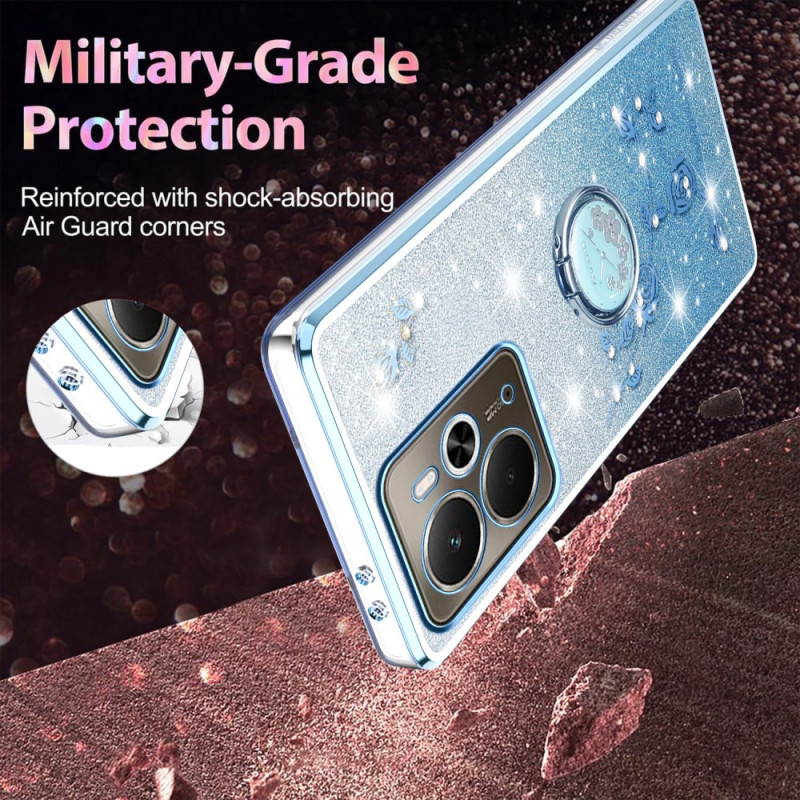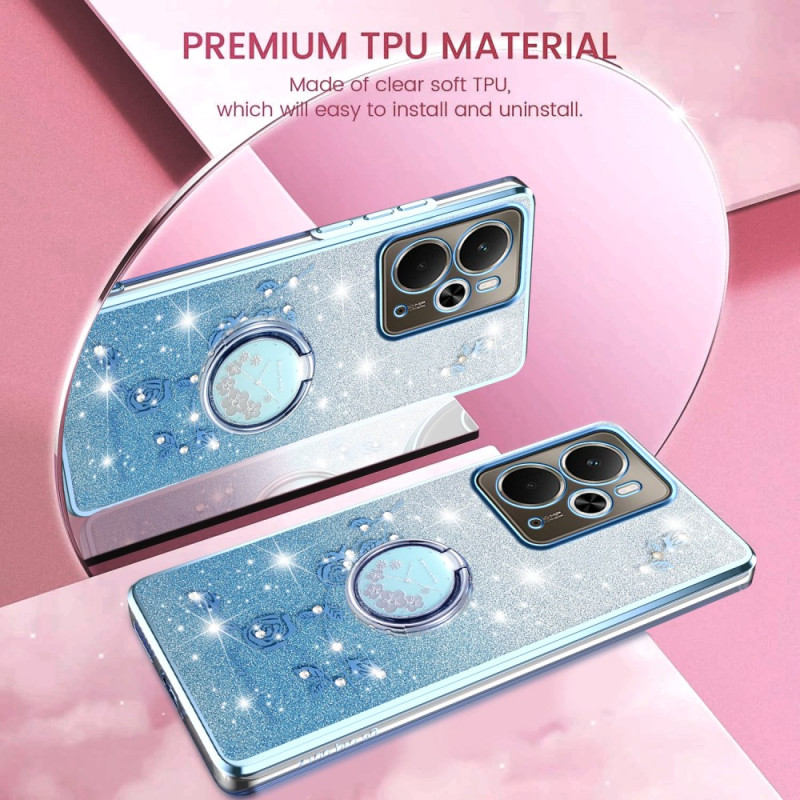 per Realme 14T 5G / 14 5G. Caratterizzata da un design scintillante con fiori e strass, questa resistente cover
