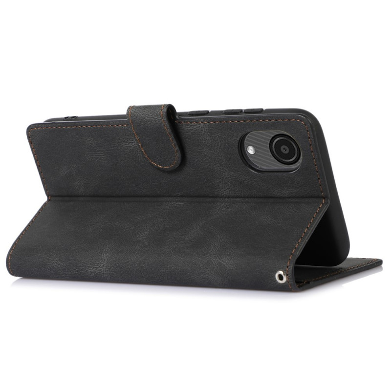 Proteggi l'intero Samsung Galaxy A03 Core con questa cover multifunzione in ecopelle dotata di cordino.