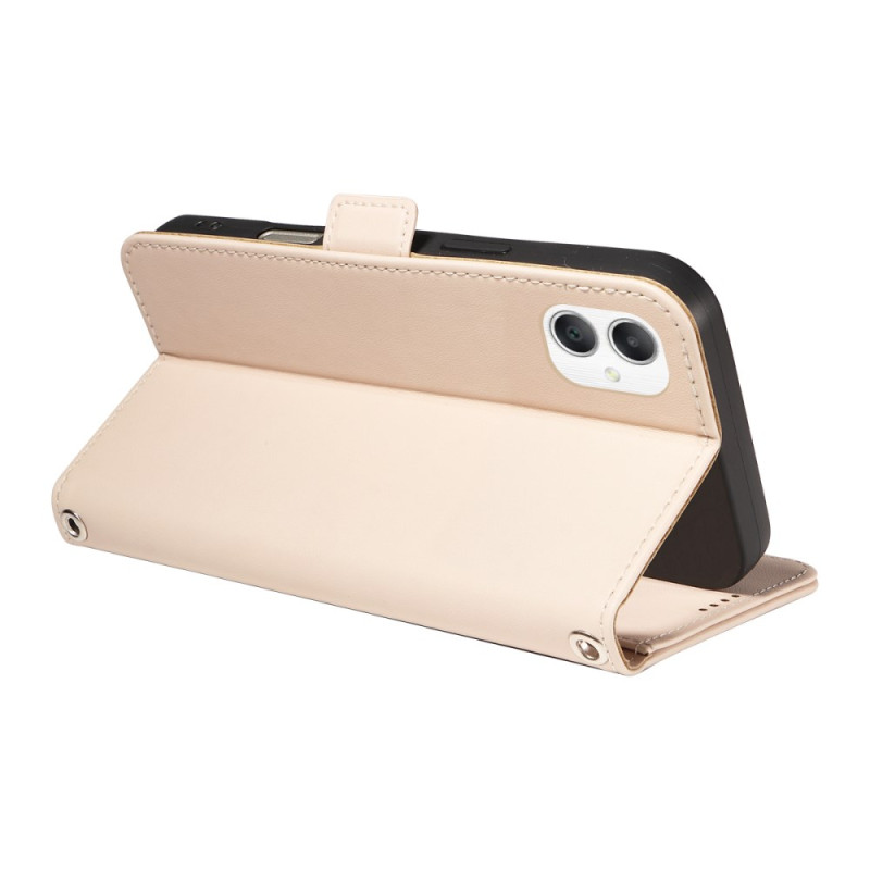 Scoprite questa elegante cover a portafoglio con patta ornata di strass e un sofisticato motivo a rombi. Con i suoi 3 scomparti per carte, la protezione RFID e il supporto integrato, unisce lo stile alla praticità quotidiana.