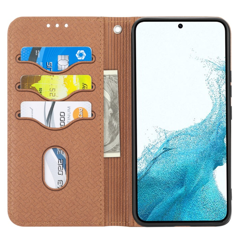 Questa cover non è solo elegante con il suo design unico a trama intrecciata, ma è anche estremamente pratica, in quanto combina il portafoglio e la cover