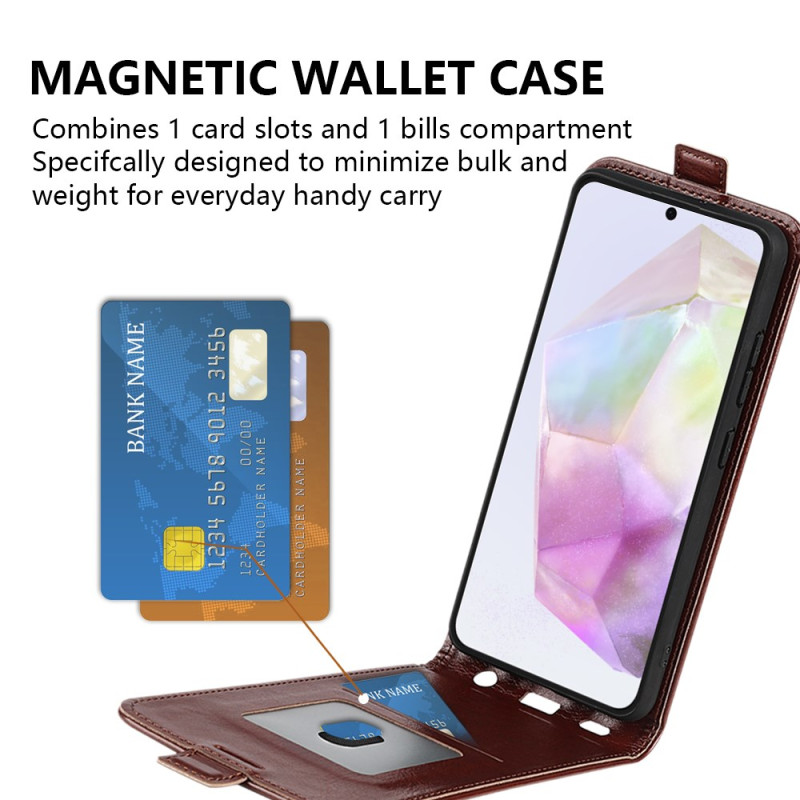 verticale per Samsung Galaxy A56 5G / A36 5G. Realizzata in pelle PU e TPU di alta qualità, offre una protezione robusta e un look sofisticato.