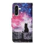 Protégez votre Samsung Galaxy A37 5G avec style grâce à cet étui à rabat motif Chat Galaxie. Combine protection antichoc, fonction portefeuille avec emplacements pour cartes, support intégré et dragonne détachable pour un transport facile.