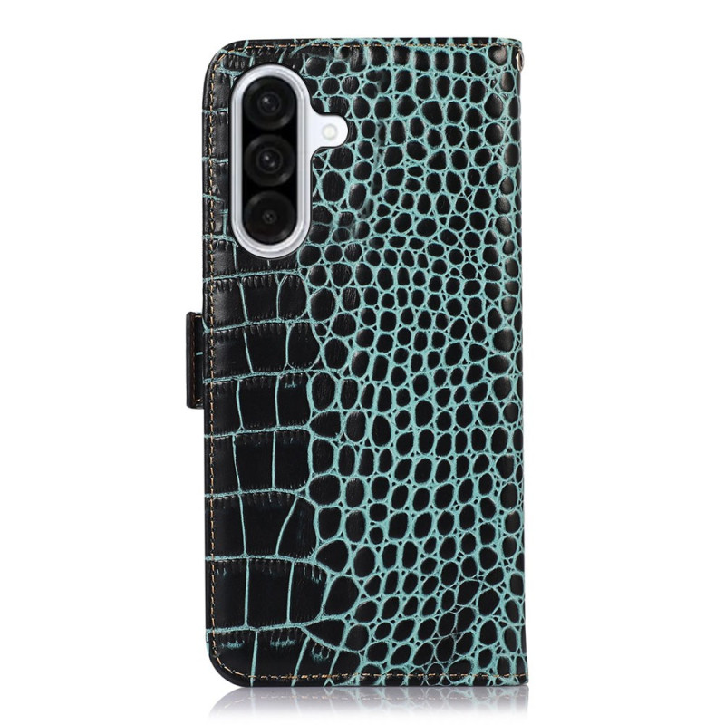 Proteggete il tuo Samsung Galaxy A57 5G con stile grazie a questa sofisticata cover a portafoglio. Dotata di tecnologia di blocco RFID, offre 3 scomparti per carte e 1 tasca per contanti. Il supporto integrato e la doppia chiusura magnetica la rendono pratica e sicura per l'uso quotidiano.