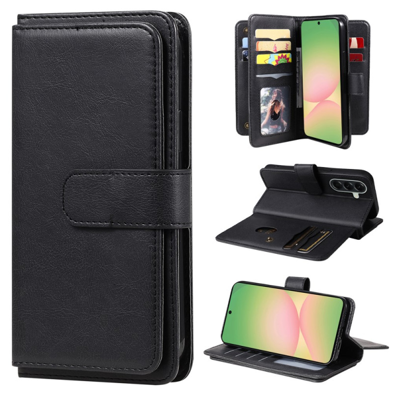 Proteggete il tuo Samsung Galaxy A57 5G con stile grazie a questa cover in pelle premium. Con 10 slot per carte e uno scomparto per contanti, unisce funzionalità e stile. La chiusura magnetica sicura e il supporto regolabile offrono praticità per l'uso quotidiano.