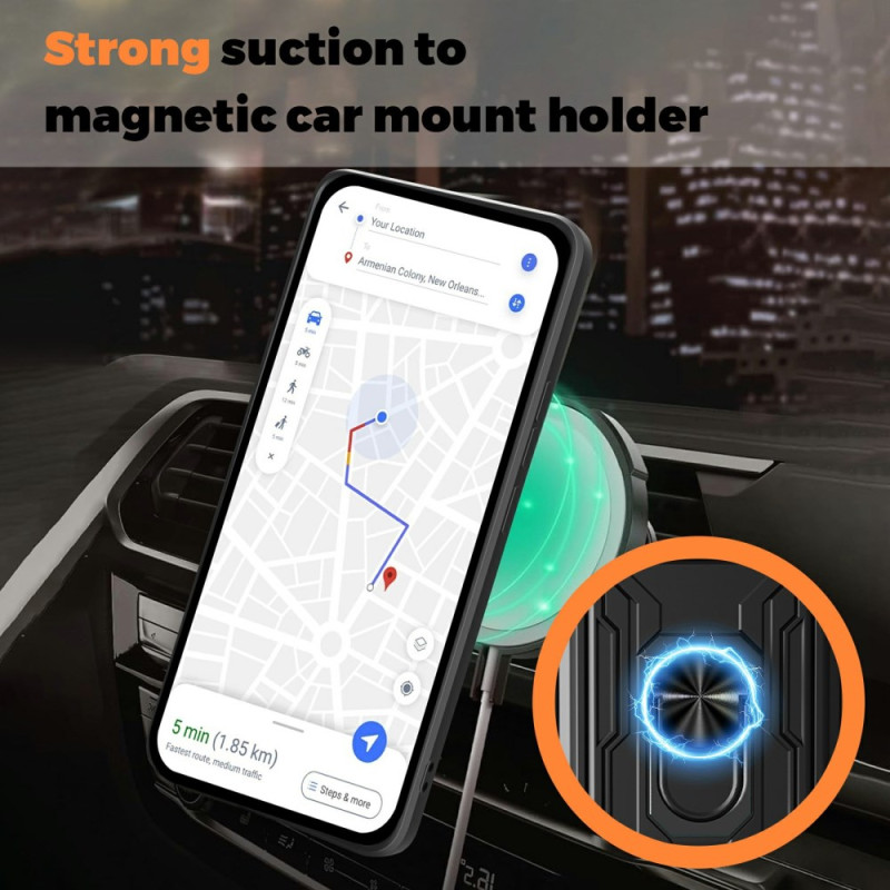 Proteggete il tuo Samsung Galaxy A57 5G con questa cover multifunzione dotata di un supporto metallico pieghevole, un portacarte integrato e una protezione scorrevole per la fotocamera. Compatibile con i supporti magnetici per auto.