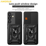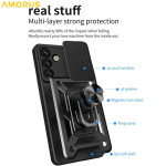 Proteggete il tuo Samsung Galaxy A57 5G con questa robusta cover dotata di protezione scorrevole per la fotocamera, supporto rotante integrato e resistenza agli urti di livello militare. Compatibile con i supporti magnetici per auto.