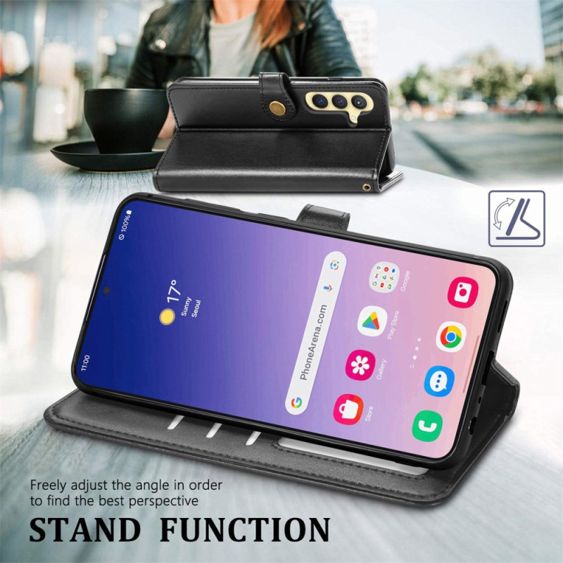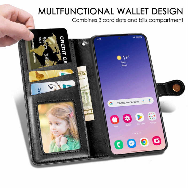 a portafoglio per Samsung Galaxy S25 5G. Con i suoi slot per le carte, la funzione stand e il cinturino da polso staccabile, unisce praticità e protezione.