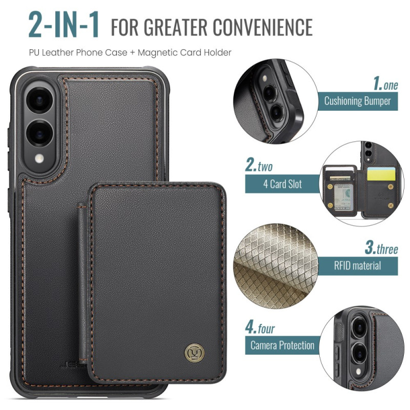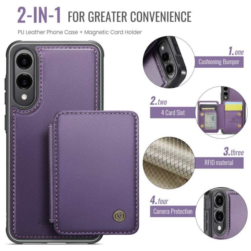 JEEHOOD per Samsung Galaxy S25 Edge, che unisce protezione e funzionalità. Il suo design 2-in-1 con supporto magnetico staccabile per carte di credito offre versatilità e praticità.