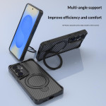 Protégez votre Samsung Galaxy S26 avec cette coque innovante dotée d'un support magnétique rotatif à 360°. Son design en fibre de carbone allie élégance et robustesse, tandis que sa compatibilité magnétique permet une connexion rapide avec vos accessoires.