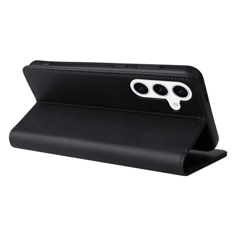 Custodia a portafoglio in pelle PU per Samsung Galaxy S26 Plus con tecnologia di blocco RFID. Dispone di 3 scomparti per carte, tasca per contanti e chiusura magnetica automatica. Protezione completa con bordi rialzati per la fotocamera.