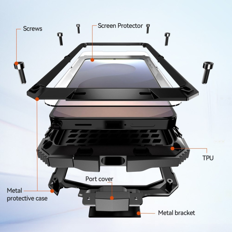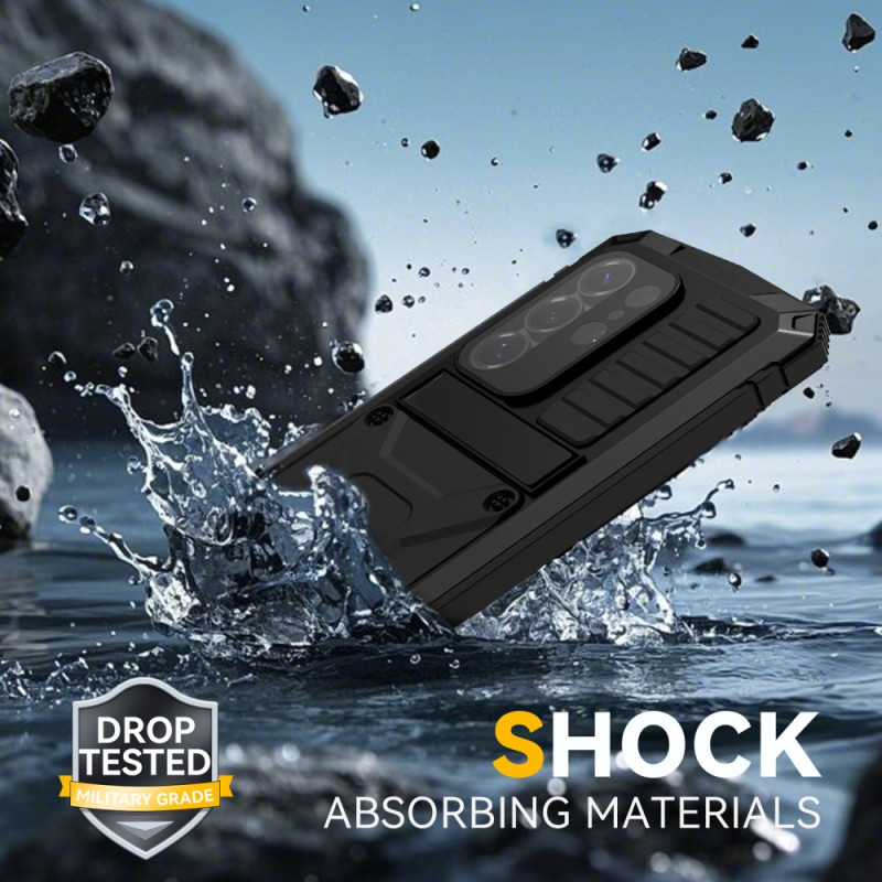 Protégez votre Samsung Galaxy S26 Ultra avec cette coque robuste multi-matériaux. Dotée d'un support intégré pour visionnage mains libres, d'un protecteur d'écran et d'une protection renforcée contre les chocs et les chutes.