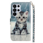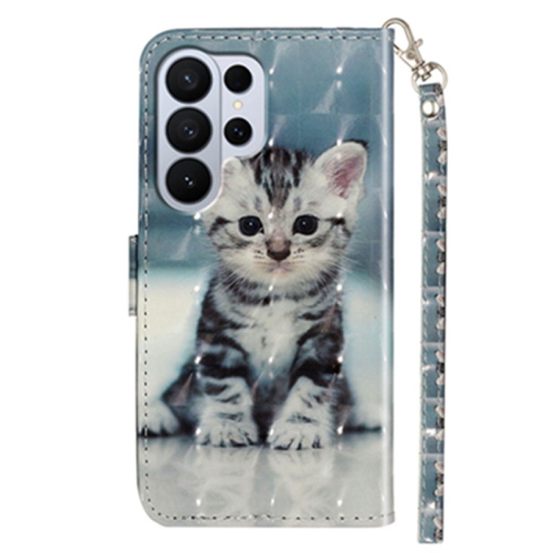 Étui portefeuille élégant avec motif chat en impression 3D pour Samsung Galaxy S26 Ultra. Design charmant et fonctionnel avec porte-cartes, support ajustable et fermeture magnétique sécurisée. Dragonne pratique incluse pour un transport facile.
