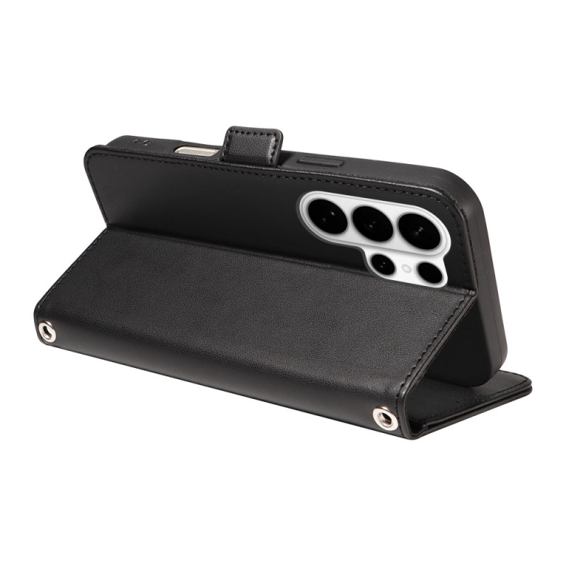 Étui élégant pour Samsung Galaxy S26 Ultra alliant luxe et praticité. Décoré de strass avec motif losange, il dispose de 3 emplacements pour cartes, d'une poche pour billets et d'une protection RFID. Le rabat magnétique se transforme en support.