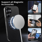 Protégez votre Samsung Galaxy S26 Ultra avec cette coque magnétique élégante. Sa texture grille fine offre une prise en main confortable et antidérapante. Conçue en cuir PU, PC et TPU de qualité supérieure, elle résiste aux rayures, aux traces de doigts et à l'eau.