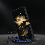Étui portefeuille élégant pour Samsung Galaxy S26 Ultra avec motif lotus doré raffiné. Design à rabat avec support ajustable, 2 fentes pour cartes et compartiment billets. Fermeture magnétique sécurisée pour une protection optimale au quotidien.