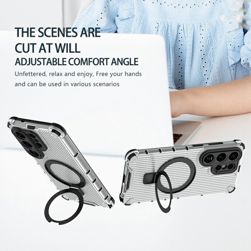 Protégez votre Samsung Galaxy S26 Ultra avec cette coque magnétique innovante. Son support ajustable de 40 à 120 degrés permet un visionnage mains libres optimal. Compatible avec les chargeurs et accessoires magnétiques pour une utilisation pratique au quotidien.