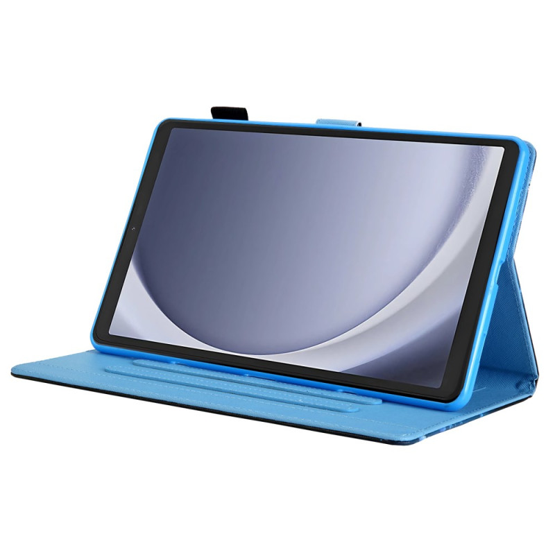 con lembo per Samsung Galaxy Tab A9, dotata di funzione sleep/wake automatica e di un motivo a rose.