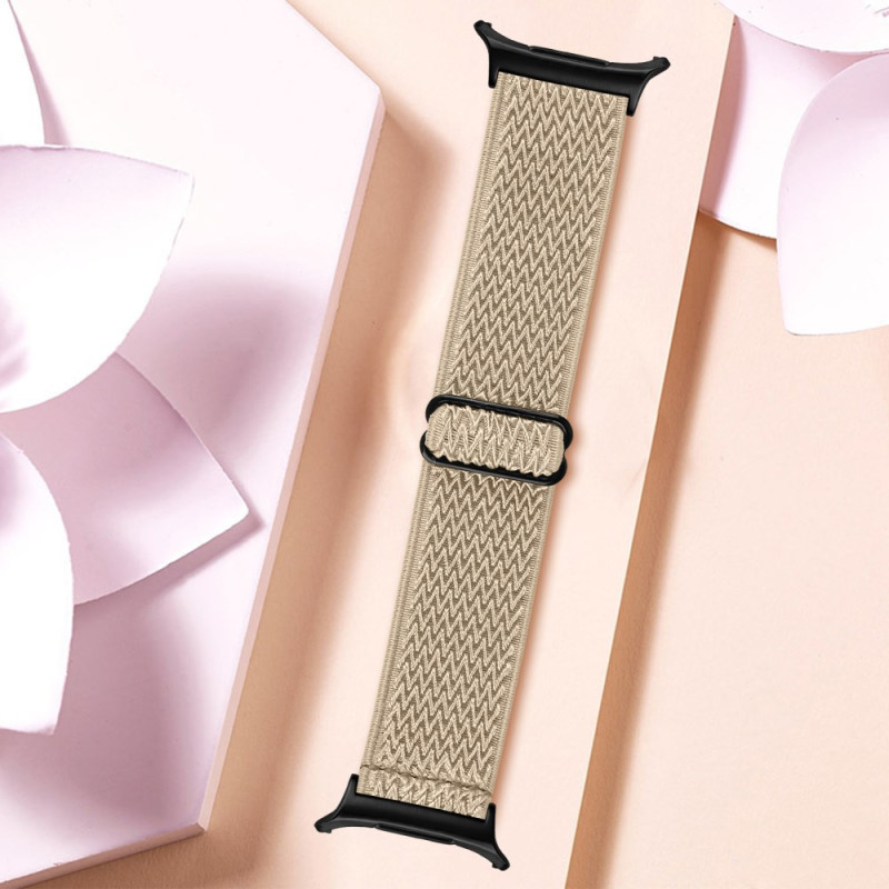 Scoprite il nostro cinturino elastico in nylon di alta qualità per Samsung Galaxy Watch8 Classic 46 mm / Watch8 44 mm / 40 mm. Traspirante, leggero e confortevole, offre una durata eccezionale per l'uso quotidiano. L'esclusivo design a onde aggiunge un tocco di stile al tuo orologio. Facilmente regolabile e semplice da indossare, questo cinturino si adatta perfettamente al polso per un comfort ottimale per tutto il giorno.