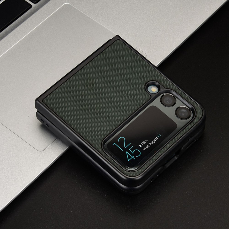 Proteggi il tuo Samsung Galaxy Z Flip 4 con questa bellissima cover in pelle effetto fibra di carbonio.