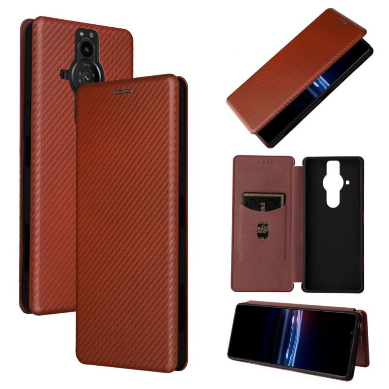 Il tuo Sony Xperia Pro-I è perfettamente al sicuro con questa flip cover in stile fibra di carbonio che combina resistenza ed eleganza.