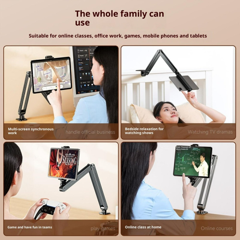 Liberatevi dai vincoli posturali e ottimizzate l'ergonomia di visione a letto o in ufficio. Questo supporto è progettato per accogliere tutti i dispositivi da 4 a 12,9 pollici, dal più piccolo smartphone ai grandi tablet aziendali. Realizzato in lega di alluminio resistente, offre una stabilità eccezionale senza oscillare. La cerniera offre una rotazione completa di 360 gradi, consentendo un posizionamento perfetto sopra un letto o una superficie di lavoro. Il meccanismo pieghevole lo rende compatto per essere riposto o trasportato.