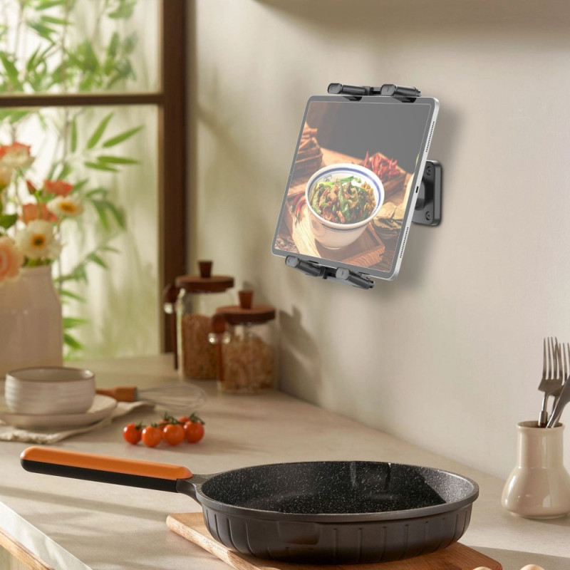 Il supporto universale da parete con rotazione a 360° ti consente di utilizzare lo smartphone o il tablet in tutta comodità, sia che stiate seguendo una ricetta, guardando un video o lavorando. Grazie alla sua rotazione completa, è possibile regolare facilmente l'angolo ideale per un comfort di visione ottimale. La robusta struttura in ABS garantisce un'eccellente stabilità e una lunga durata. Compatibile con tutti i dispositivi da 4,7" a 15", si installa in modo sicuro grazie a un sistema di fissaggio a vite, per un look discreto e poco ingombrante in cucina, ufficio o camera da letto.