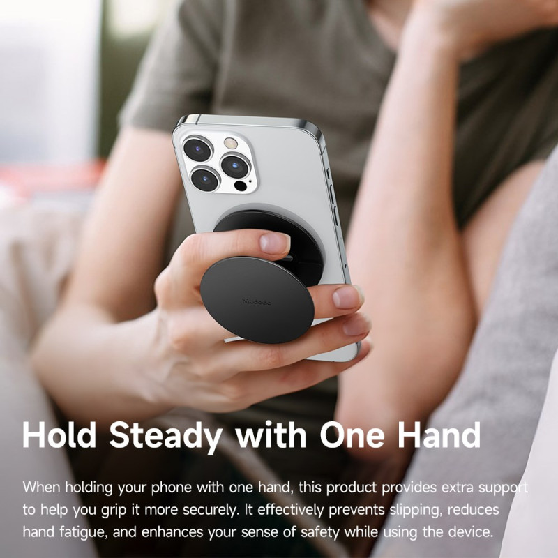 Il supporto magnetico MCDODO unisce eleganza e praticità per tenere lo smartphone saldamente in posizione. Grazie alla potente base magnetica e al braccio articolato multi-angolo, offre una perfetta stabilità e un'ottima libertà di posizionamento, sia che si guardino video, si effettuino chiama o si lavori. Il suo design compatto in lega di alluminio e silicone antiscivolo assicura un'eccellente durata e una presa affidabile su qualsiasi superficie piana. Compatibile con tutti i telefoni magnetici, fa bella mostra di sé sulla scrivania o sul comodino.