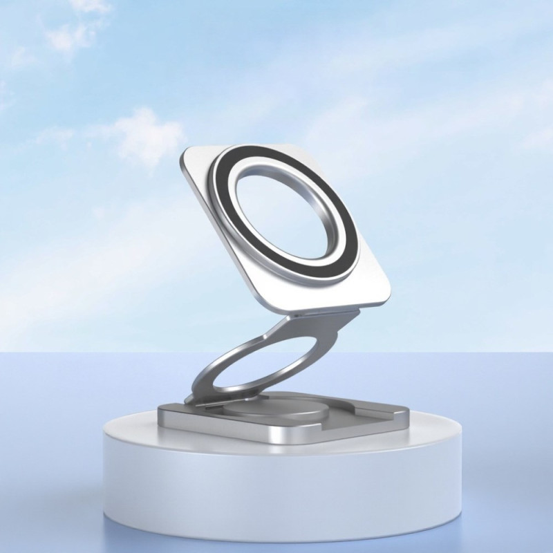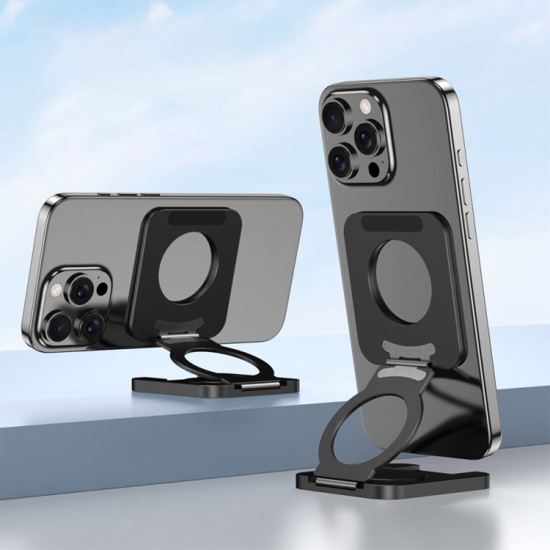 Il supporto magnetico bifacciale per telefono offre un'esperienza d'uso fluida ed elegante grazie alla lega di alluminio aeronautico e al design in silicone antiscivolo. Il suo sistema magnetico bifacciale consente una rotazione di 360° e una regolazione multiangolare, ideale per la modalità verticale o orizzontale. Ultra sottile (solo 10 mm quando è piegato), si infila facilmente in tasca o in borsa. Stabile, leggero e compatibile con tutti i modelli MagSafe, è adatto anche a smartphone e tablet per l'uso in ufficio, lo streaming, le videochiamate o l'uso in auto.