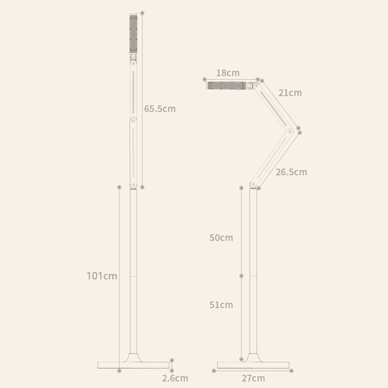 Il supporto da pavimento Boneruy è la soluzione ideale per lo streaming, le lezioni online o la visione di video in piena libertà. Il suo design rotante a 360° e l'altezza regolabile da 51 a 101 cm garantiscono un comfort ottimale per l'utente, sia che si trovi sdraiato, seduto o in piedi. Realizzato in lega di alluminio, acciaio al carbonio, plastica e silicone, garantisce stabilità e durata. Il suo braccio regolabile può contenere due telefoni contemporaneamente o un tablet, con orientamento orizzontale o verticale. Pieghevole ed elegante, si adatta a tutti gli ambienti e agli usi quotidiani.