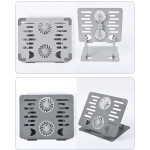Questo supporto per laptop con ventola integrata offre un comfort ergonomico ottimale e un raffreddamento efficiente. Grazie all'altezza regolabile in continuo, consente di adottare una postura di lavoro ideale, riducendo l'affaticamento degli occhi e del collo. La sua struttura traforata, combinata con una potente ventola, migliora notevolmente la dissipazione del calore, anche in caso di utilizzo prolungato. Realizzato in robusto acciaio al carbonio con superfici in silicone antiscivolo, garantisce una perfetta stabilità e può sostenere fino a 10 kg. Pieghevole e portatile, è adatto a dispositivi fino a 17,3".