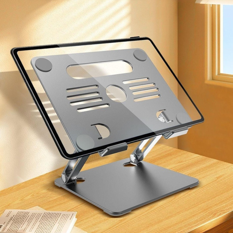 Questo supporto per laptop con ventola integrata garantisce un raffreddamento ottimale anche durante l'uso intensivo. La sua altezza regolabile in continuo permette di adottare una postura ergonomica e confortevole, ideale per il lavoro prolungato. La sua struttura in acciaio al carbonio garantisce un'eccellente stabilità, in grado di sostenere un carico fino a 10 kg. Grazie al suo design pieghevole, è facile da trasportare e si adatta a tutti i computer e tablet fino a 17,3". Alimentato da un'alimentazione di 5V/2A, il suo sistema di ventilazione e la superficie perforata migliorano notevolmente la dissipazione del calore.