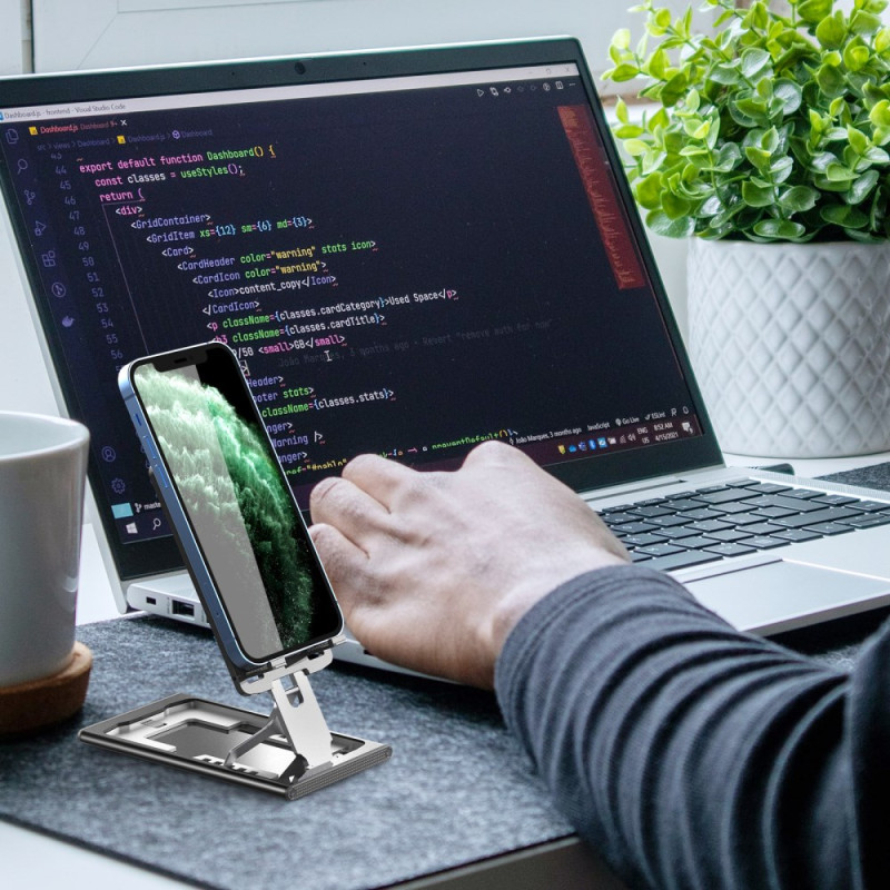 Il supporto da tavolo AHASTYLE offre una soluzione elegante ed ergonomica per tenere in mano i tuoi dispositivi ogni giorno. Grazie al sistema di apertura rapida e ai molteplici angoli di regolazione, consente di adottare facilmente la posizione di visualizzazione ideale per lavorare, studiare o guardare video. Realizzato in robusta lega di alluminio, offre un'eccellente stabilità pur rimanendo leggero e resistente. La sua struttura pieghevole lo rende facile da trasportare e da riporre. Compatibile con computer portatili, tablet e smartphone, solleva gli schermi all'altezza degli occhi e aiuta a ridurre l'affaticamento del collo.