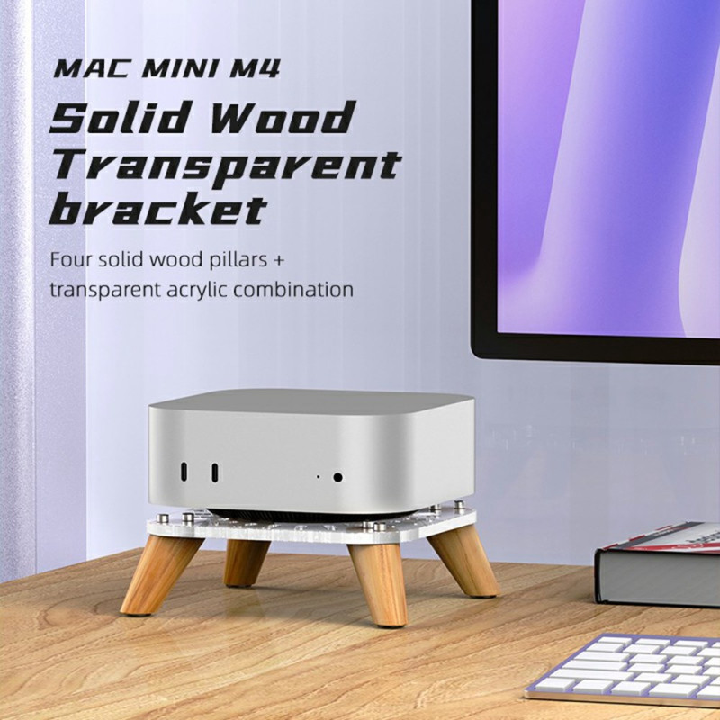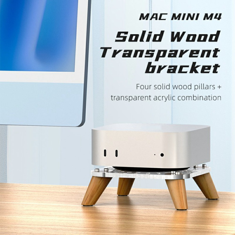 Il supporto verticale WoodStand per Mac Mini M4 e M4 Pro offre la perfetta combinazione di estetica e funzionalità. Progettato esclusivamente per il modello 2024, solleva il dispositivo di 40 mm per migliorare la circolazione dell'aria e ottimizzare il raffreddamento. La sua struttura, che combina quattro gambe in legno massiccio e una piastra acrilica da 5 mm, garantisce stabilità ed eleganza. I cuscinetti antiscivolo sono integrati sia nella base che nelle gambe per garantire una perfetta aderenza. Ogni pezzo è accuratamente lucidato a mano per ottenere una finitura di prima qualità, ideale per valorizzare un ufficio moderno.