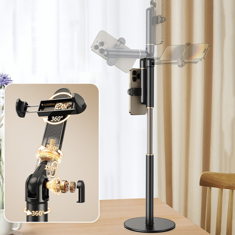 Questo supporto per telefono estensibile e girevole è ideale per lo streaming, la creazione di contenuti o le videoconferenze. Il braccio regolabile da 53 a 63 cm consente di regolare facilmente l'altezza per un'inquadratura perfetta, mentre la rotazione a 360° permette di passare rapidamente dalla modalità verticale a quella orizzontale. Realizzato in acciaio al carbonio, lega di alluminio e ABS, offre un'eccellente stabilità anche nelle riprese aeree. Compatibile con smartphone di larghezza compresa tra 6 e 8 cm, si adatta alla maggior parte dei modelli moderni. Solido e compatto, è un supporto affidabile per l'uso quotidiano.