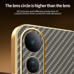 Protezione elegante e robusta per il tuo Vivo V50 Lite. Design flessibile in TPU con finitura galvanica premium e texture in fibra di carbonio antitraccia. Bordi rialzati per proteggere lo schermo e la fotocamera, tagli precisi e compatibilità con il caricabatterie magnetico.