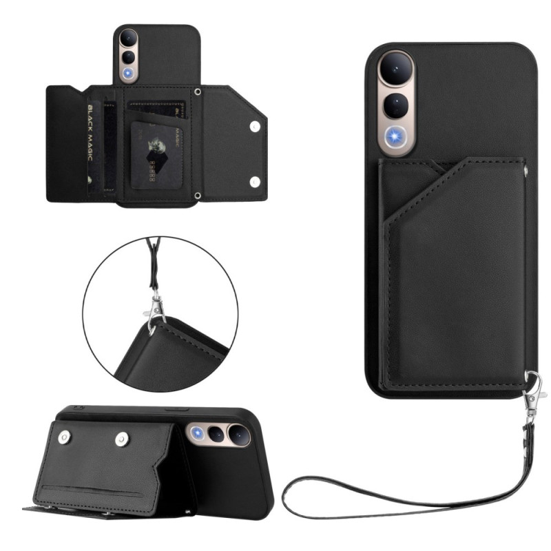 Proteggete il tuo Vivo V50 Lite 5G con stile grazie a questa cover multifunzionale. Dotata di portacarte integrato, di un supporto regolabile e di un laccetto abbinato, unisce eleganza e praticità per l'uso quotidiano.