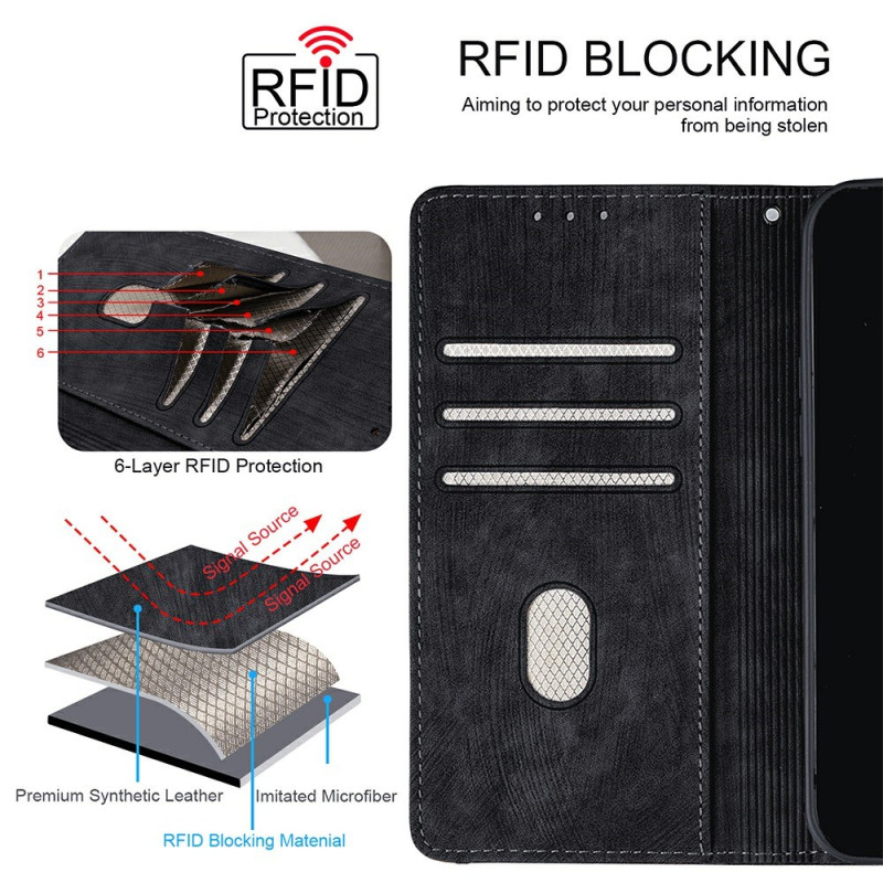 Proteggete il tuo Vivo V50 Lite 5G con stile grazie a questa cover multifunzione. Dotata di protezione RFID antipirateria, 3 slot per carte e un supporto regolabile, unisce sicurezza e praticità per l'uso quotidiano.