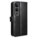 Elegante cover a portafoglio in pelle PU con texture cavallo pazzo per Vivo V50 Lite. Dispone di 3 scomparti per carte, 1 scomparto per banconote, supporto integrato e chiusura magnetica. Protezione completa con laccetto incluso per un trasporto sicuro.