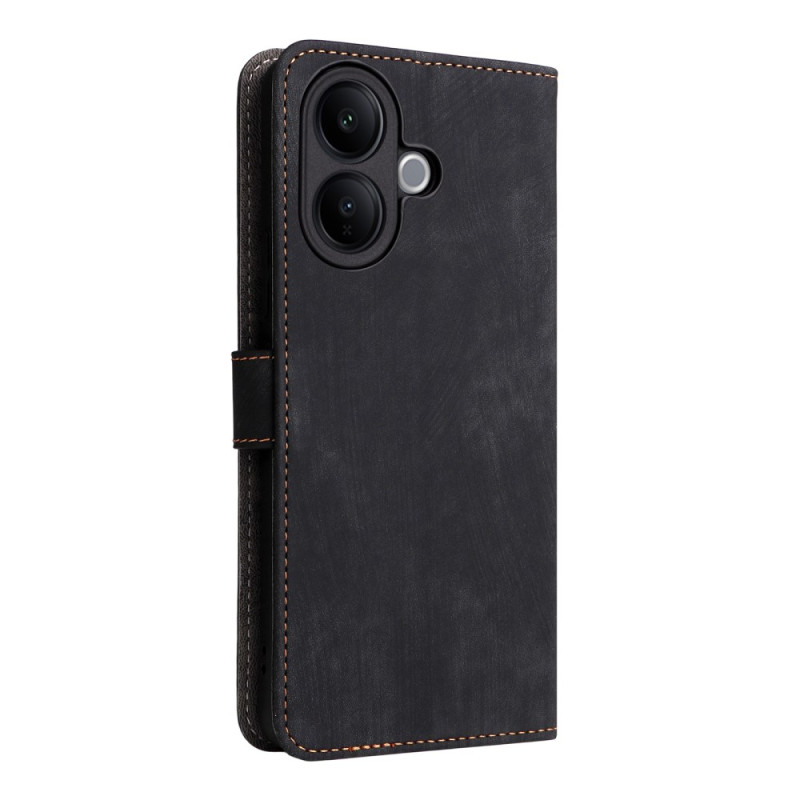 Custodia multifunzione in pelle PU per Vivo V60 Lite 5G. Protezione RFID integrata, 3 slot per carte, supporto per mani libere e chiusura magnetica. Combinate stile, sicurezza e praticità quotidiana con il cinturino incluso.