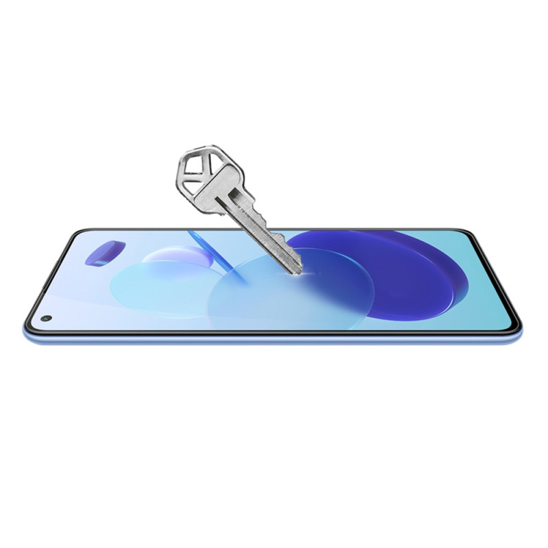 Questa protezione in vetro temperato con contorni neri protegge lo schermo del tuo