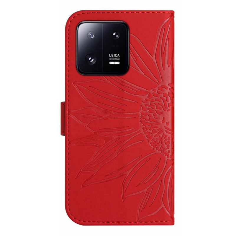 La cover in ecopelle presenta un motivo floreale ed è dotata di una cinghia per facilitare il trasporto dello Xiaomi 13 Pro.
