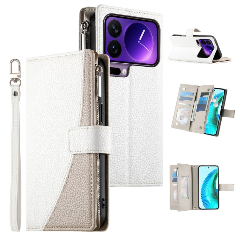 Custodia a portafoglio in pelle con cerniera per Xiaomi 17 Pro. Protezione completa, design elegante con texture raffinata. Include cinghie per un comodo trasporto, scomparti multipli e funzione stand per una visione a mani libere. Facile accesso a tutte le porte e ai pulsanti.