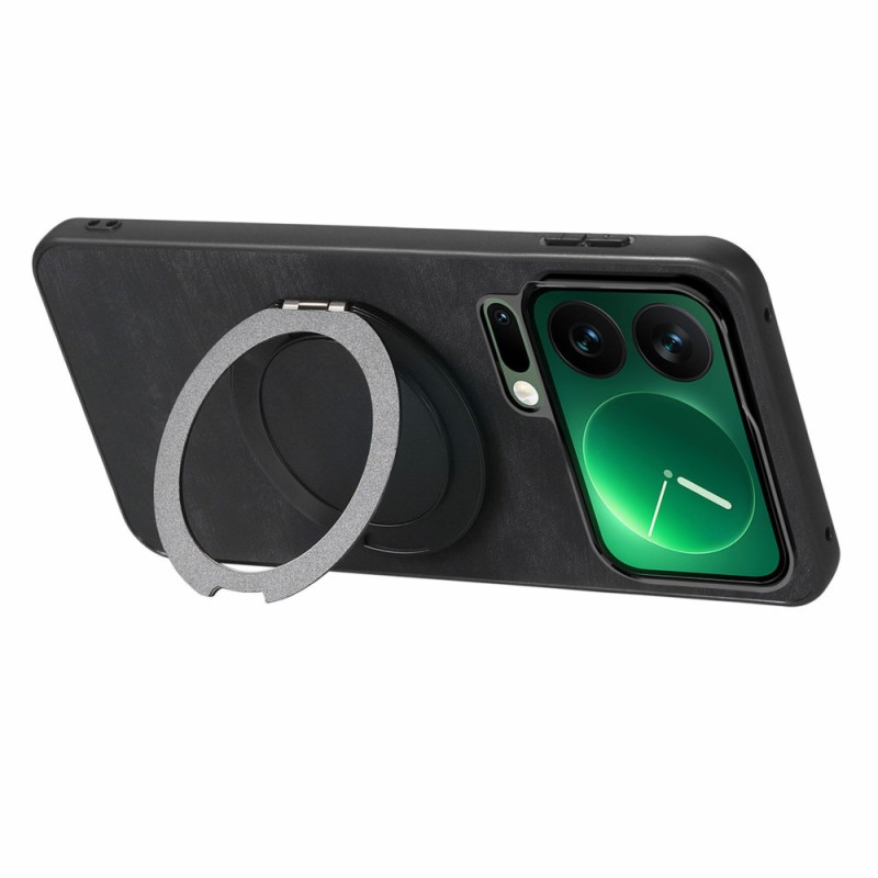 Proteggete il tuo Xiaomi 17 Pro Max con stile grazie a questa elegante cover con supporto anti-stress rotante a 360° e finitura in pelle retrò. Compatibile con il magnete, offre una protezione ottimale con bordi rialzati per lo schermo e la fotocamera.