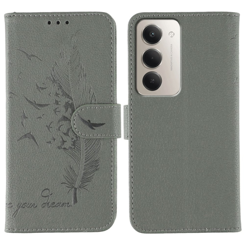 Scoprite la nostra elegante cover per Xiaomi Redmi 15 4G. Realizzata in pelle PU testurizzata e TPU, offre una presa confortevole e un look lussuoso. Con il suo motivo di piume stampato, il supporto regolabile, i pratici scomparti e la chiusura magnetica, questa cover combina funzionalità e stile per una protezione ottimale del tuo smartphone.