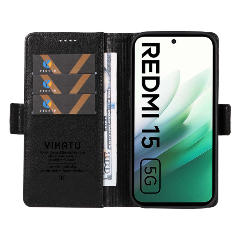 Scoprite la nostra cover a portafoglio in pelle PU di alta qualità per lo Xiaomi Redmi 15 4G. Con la sua elegante texture a litchi, i due scomparti per le carte e la tasca per le banconote, questa cover combina funzionalità e stile. Il suo design a doppio taglio e la protezione completa assicurano che il telefono sia al sicuro ogni giorno.