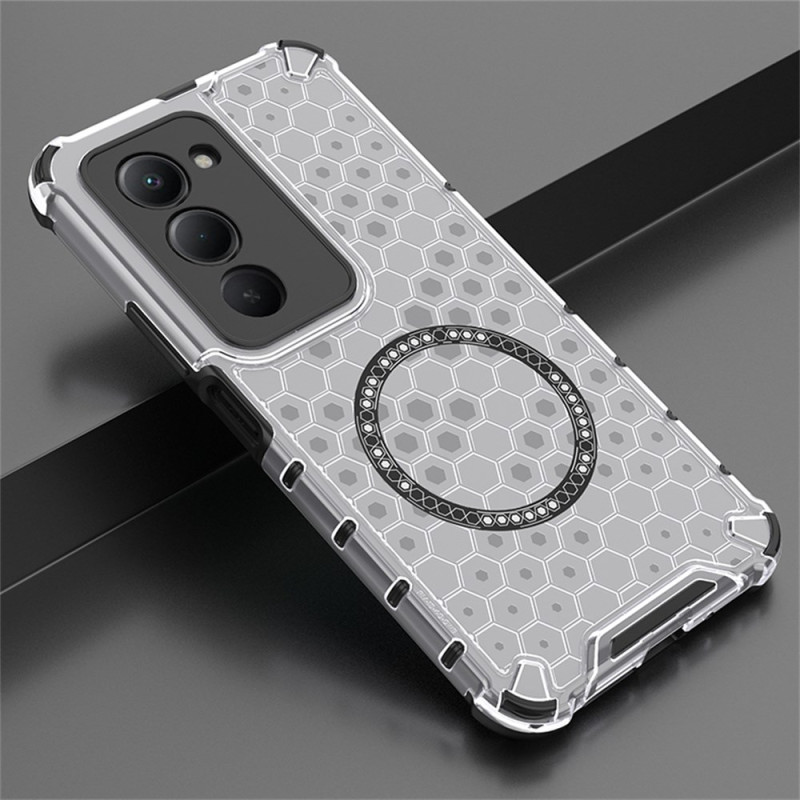 Proteggete il tuo smartphone con stile grazie a questa cover ibrida dal raffinato design a nido d'ape. Il design TPU + PC offre una protezione angolare rinforzata, compatibilità MagSafe integrata e resistenza ottimale a urti e graffi.