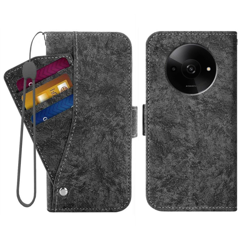 Elegante portafoglio con motivo artistico a inchiostro di china. Presenta 3 scomparti per carte, 1 tasca per biglietti e un portacarte rotante esterno. Doppia chiusura magnetica, funzione mani libere e pratica tracolla.